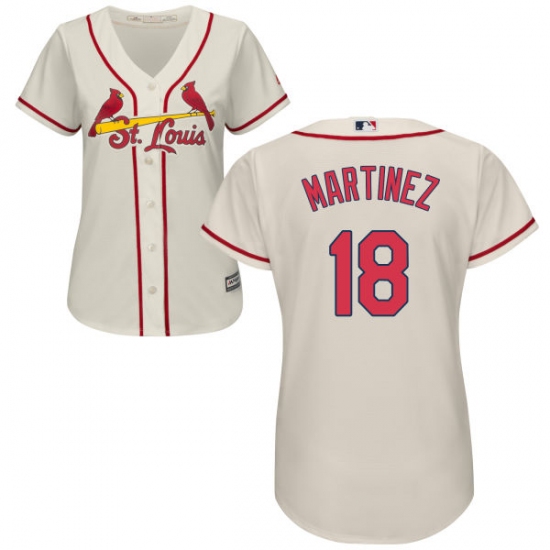 Home>MLB>St. Louis Cardinals>Carlos Martinez>Women's Majestic St. Louis Cardinals #18 Carlos Martinez Authentic Cream Alternate Cool Base MLB Jersey