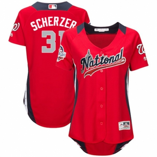 >Women's Majestic Washington Nationals #31 Max Scherzer Game Red National League 2018 MLB All-Star MLB Jersey