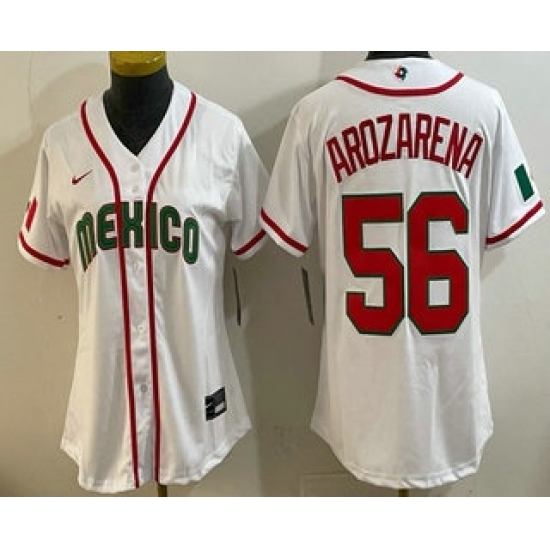 >Women's Mexico #56 Randy Arozarena White 2026 World Baseball Classic Cool Base Jersey