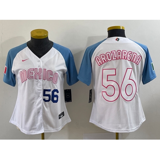Women's Mexico Baseball #56 Randy Arozarena 2023 White Blue World Classic Stitched Jersey5