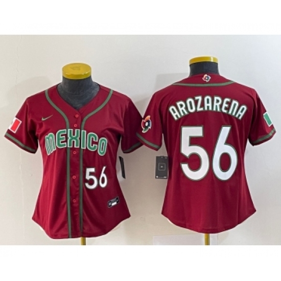 Women's Mexico Baseball #56 Randy Arozarena Number 2023 Red World Classic Stitched Jersey