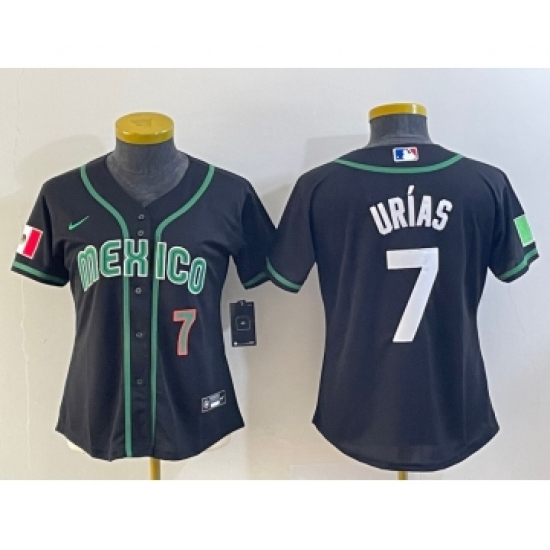 >Women's Mexico Baseball #7 Julio Urias Number 2023 Black World Classic Stitched Jersey3