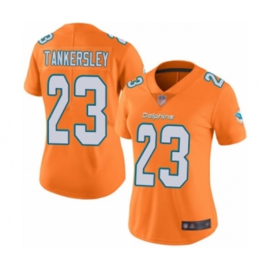 >Women's Miami Dolphins #23 Cordrea Tankersley Limited Orange Rush Vapor Untouchable Football Jersey