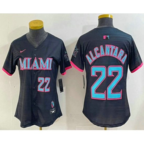 Women's Miami Marlins #22 Sandy Alcantara Number Black 2025 City Connect Limited Stitched Jersey
