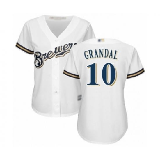 Women's Milwaukee Brewers #10 Yasmani Grandal Authentic White Home Cool Base Baseball Jersey
