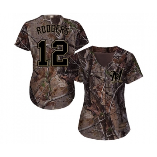 Women's Milwaukee Brewers #12 Aaron Rodgers Authentic Camo Realtree Collection Flex Base Baseball Jersey