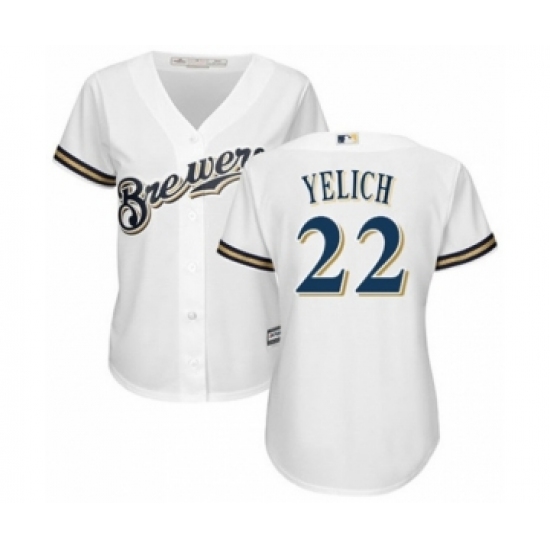 Women's Milwaukee Brewers #22 Christian Yelich Authentic White Home Cool Base Baseball Player Jersey