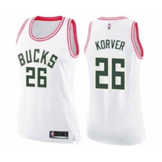 Women's Milwaukee Bucks #26 Kyle Korver Swingman White Pink Fashion Basketball Jersey