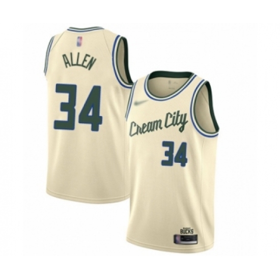 >Women's Milwaukee Bucks #34 Ray Allen Swingman Cream Basketball Jersey - 2019 20 City Edition