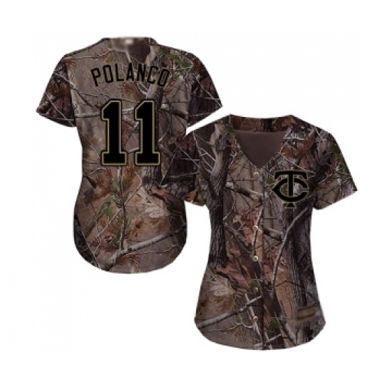>Women's Minnesota Twins #11 Jorge Polanco Authentic Camo Realtree Collection Flex Base Baseball Jersey
