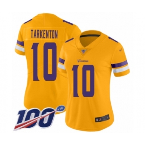 Women's Minnesota Vikings #10 Fran Tarkenton Limited Gold Inverted Legend 100th Season Football Jersey