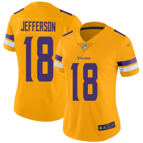 Women's Minnesota Vikings #18 Justin Jefferson Gold Stitched NFL Limited Inverted Legend Jersey