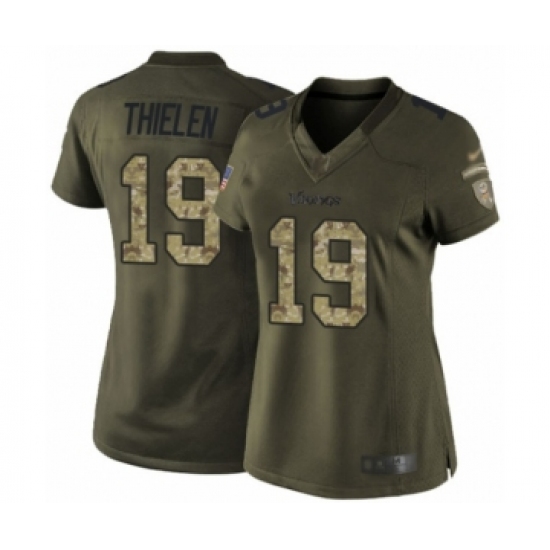 Women's Minnesota Vikings #19 Adam Thielen Limited Green Salute to Service Football Jersey