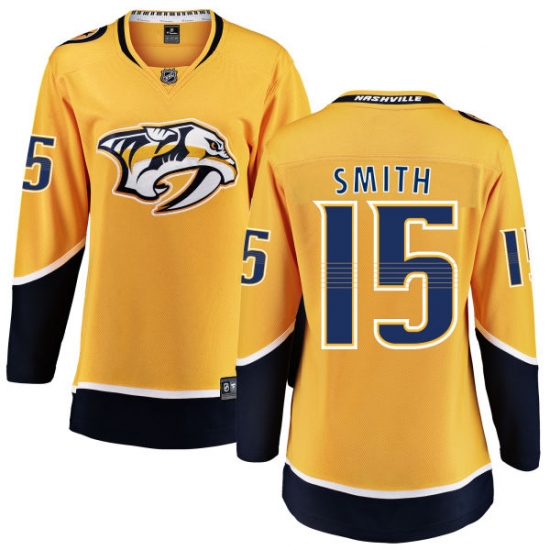 Home>NHL>Nashville Predators>Craig Smith>Women's Nashville Predators #15 Craig Smith Fanatics Branded Gold Home Breakaway NHL Jersey