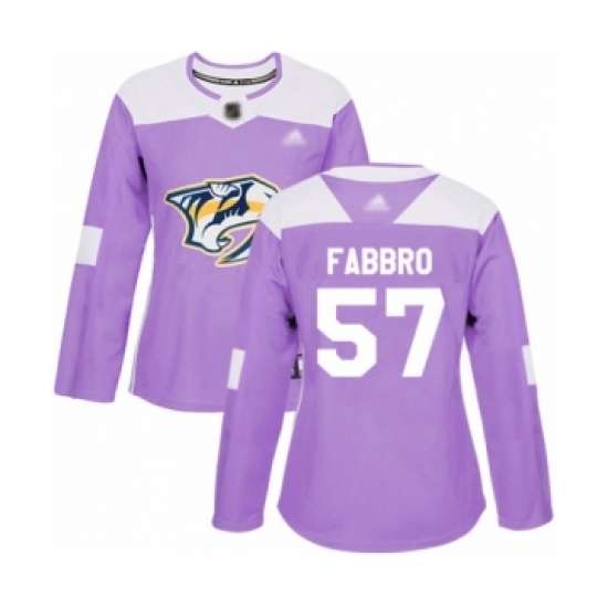 >Women's Nashville Predators #57 Dante Fabbro Authentic Purple Fights Cancer Practice Hockey Jersey