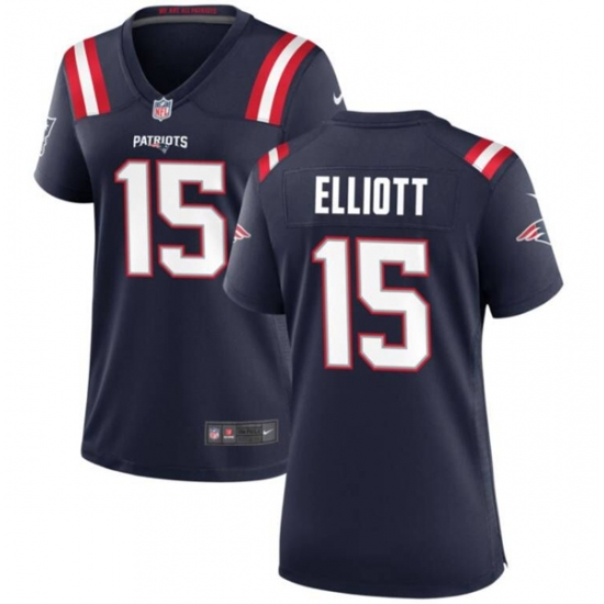 Women's New England Patriots #15 Ezekiel Elliott Navy Stitched Jersey(Run Small)