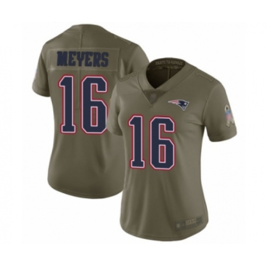 >Women's New England Patriots #16 Jakobi Meyers Limited Olive 2017 Salute to Service Football Jersey