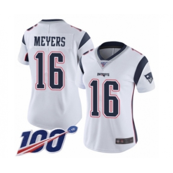 >Women's New England Patriots #16 Jakobi Meyers White Vapor Untouchable Limited Player 100th Season Football Jersey