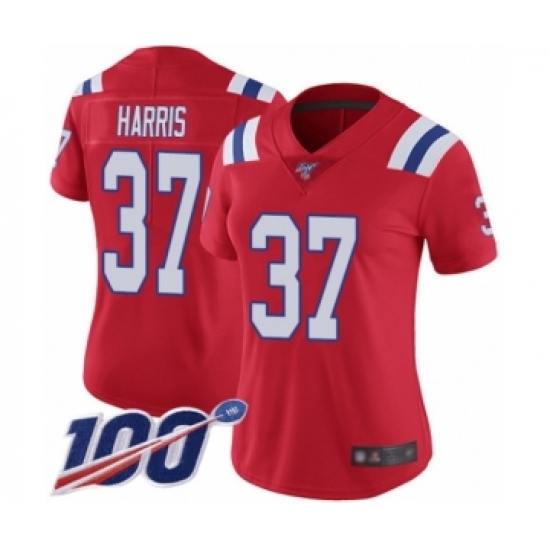 >Women's New England Patriots #37 Damien Harris Red Alternate Vapor Untouchable Limited Player 100th Season Football Jersey