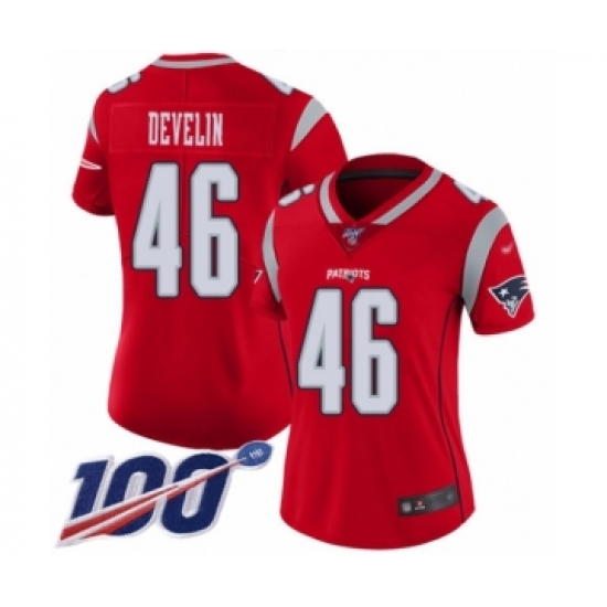 Women's New England Patriots #46 James Develin Limited Red Inverted Legend 100th Season Football Jersey