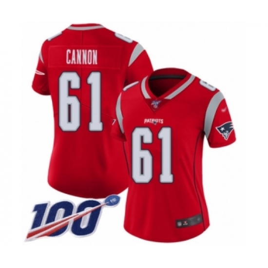 >Women's New England Patriots #61 Marcus Cannon Limited Red Inverted Legend 100th Season Football Jersey