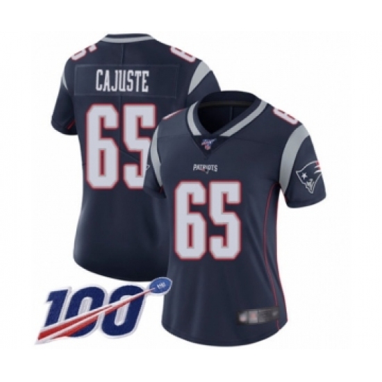>Women's New England Patriots #65 Yodny Cajuste Navy Blue Team Color Vapor Untouchable Limited Player 100th Season Football Jersey