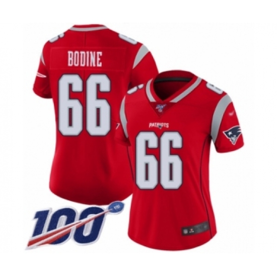 >Women's New England Patriots #66 Russell Bodine Limited Red Inverted Legend 100th Season Football Jersey