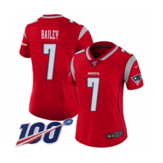 >Women's New England Patriots #7 Jake Bailey Limited Red Inverted Legend 100th Season Football Jersey
