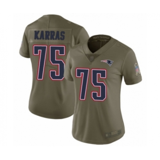 Women's New England Patriots #75 Ted Karras Limited Olive 2017 Salute to Service Football Jersey