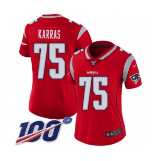 Women's New England Patriots #75 Ted Karras Limited Red Inverted Legend 100th Season Football Jersey
