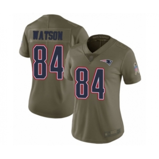 >Women's New England Patriots #84 Benjamin Watson Limited Olive 2017 Salute to Service Football Jersey