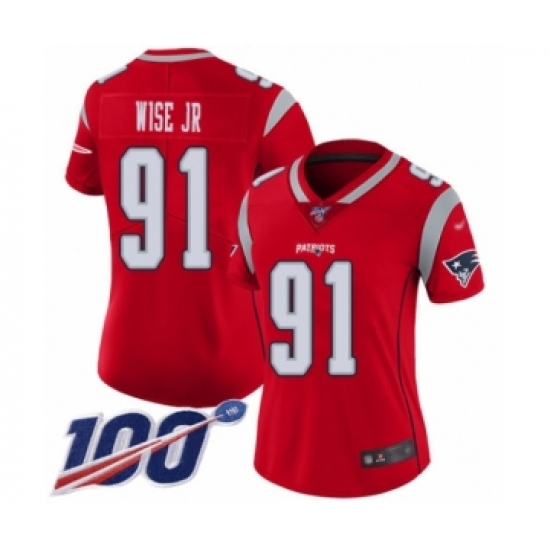 >Women's New England Patriots #91 Deatrich Wise Jr Limited Red Inverted Legend 100th Season Football Jersey