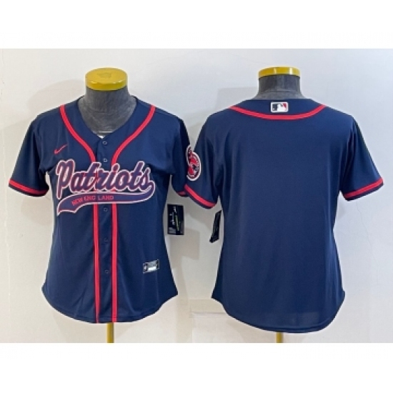 Women's New England Patriots Blank Navy With Patch Cool Base Stitched Baseball Jersey