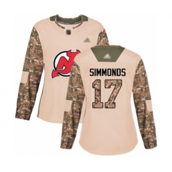 Women's New Jersey Devils #17 Wayne Simmonds Authentic Camo Veterans Day Practice Hockey Jersey