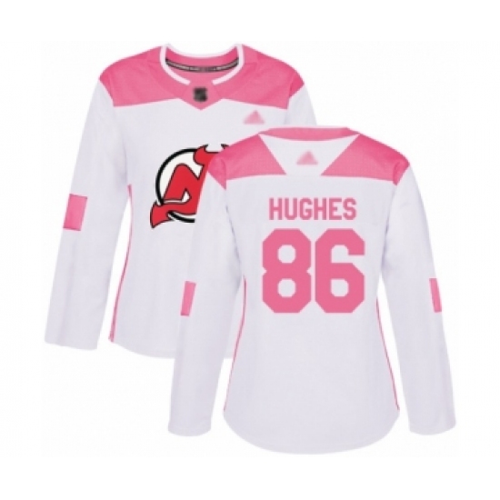 Women's New Jersey Devils #86 Jack Hughes Authentic White Pink Fashion Hockey Jersey