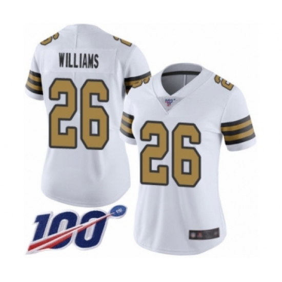 >Women's New Orleans Saints #26 P.J. Williams Limited White Rush Vapor Untouchable 100th Season Football Jersey