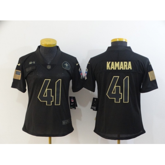 >Women's New Orleans Saints #41 Alvin Kamara Black Nike 2020 Salute To Service Limited Jersey