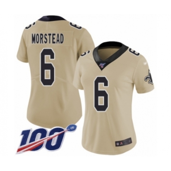 Women's New Orleans Saints #6 Thomas Morstead Limited Gold Inverted Legend 100th Season Football Jersey