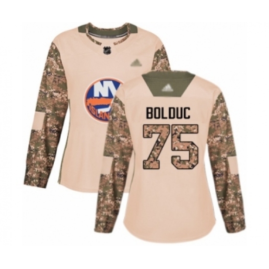 >Women's New York Islanders #75 Samuel Bolduc Authentic Camo Veterans Day Practice Hockey Jersey