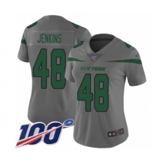 >Women's New York Jets #48 Jordan Jenkins Limited Gray Inverted Legend 100th Season Football Jersey