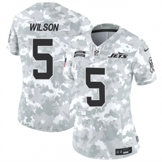>Women's New York Jets #5 Garrett Wilson 2024 F.U.S.E Arctic Camo Salute To Service Limited Stitched Jersey(Run Small)