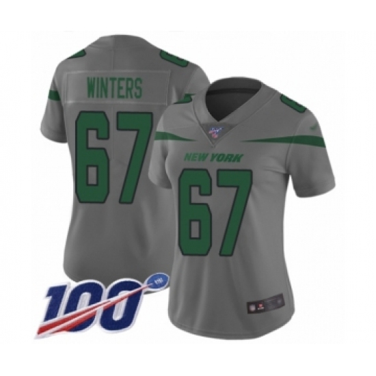 Women's New York Jets #67 Brian Winters Limited Gray Inverted Legend 100th Season Football Jersey