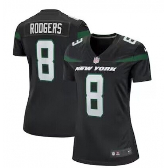 >Women's New York Jets #8 Aaron Rodgers Black 2023 Vapor Untouchable Stitched Nike Limited Jersey