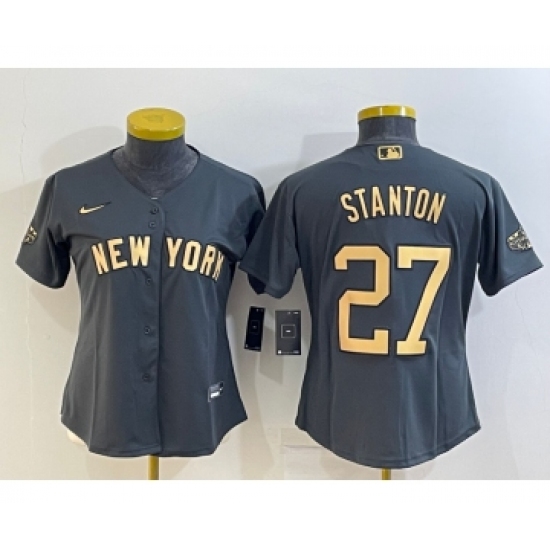 Women's New York Yankees #27 Giancarlo Stanton Grey 2022 All Star Stitched Cool Base Nike Jersey