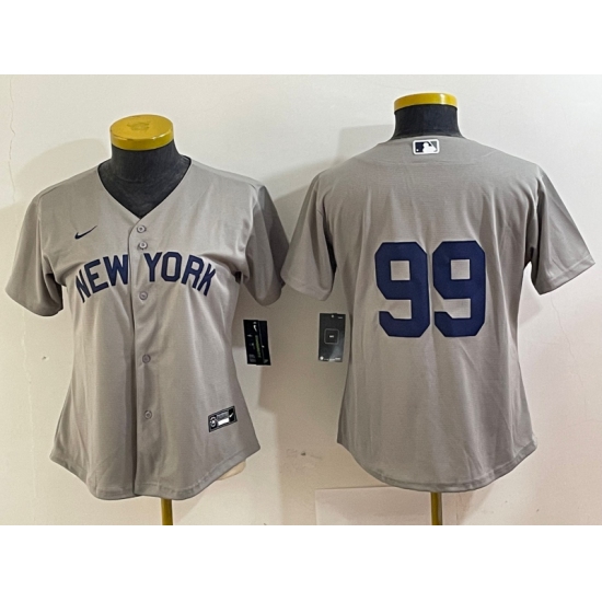 >Women's New York Yankees #99 Aaron Judge 2021 Grey Field of Dreams Cool Base Stitched Jersey