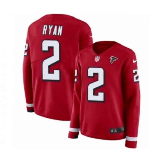 Women's Nike Atlanta Falcons #2 Matt Ryan Limited Red Therma Long Sleeve NFL Jersey