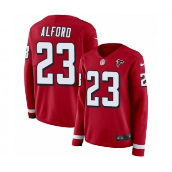 >Women's Nike Atlanta Falcons #23 Robert Alford Limited Red Therma Long Sleeve NFL Jersey