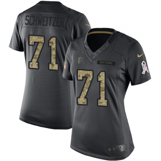 Home>NFL>Atlanta Falcons>Wes Schweitzer>Women's Nike Atlanta Falcons #71 Wes Schweitzer Limited Black 2016 Salute to Service NFL Jersey