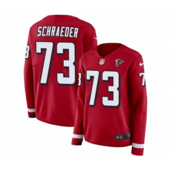 Women's Nike Atlanta Falcons #73 Ryan Schraeder Limited Red Therma Long Sleeve NFL Jersey