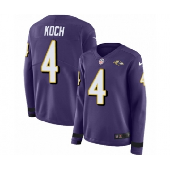 Women's Nike Baltimore Ravens #4 Sam Koch Limited Purple Therma Long Sleeve NFL Jersey
